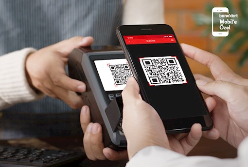 - QR ile Ödeme yapmak için; QR ile ödeme yapacağınızı görevliye iletin. Bankkart Mobil'de "Ödemeler" menüsündeki Ödeme'yi seçin ve POS ekranındaki barkodu Bankkart Mobil'deki ödeme ekranına okutun. Ödemede kullanacağınız kredi kartını Bankkart Mobil'den seçin ve onay vererek ödemeyi tamamlayın.